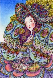 Description: Woman 1 and Woman 2 (see below), these two portraits, whether it is her moving facial expression and exquisite hairstyle, or her noble and gorgeous clothing, the artist successfully lets the viewer feel the transformation and fusion of Eastern and Western aesthetic and cultural elements. (CLICK ON THE IMAGE TO ENLARGE IT.)